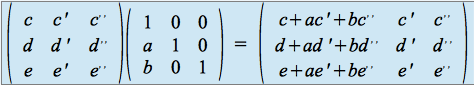 Calculer les produits suivants et observer l'action de ces produits sur les vecteurs colonnes de la première matrice.