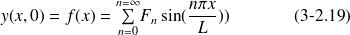 On étudie l'équation d'une corde tendue flexible. Initialement la corde est tendue le long de l'axe des x entre x=0 et x=L (voir figure 3-2.11), puis elle est mise en mouvement (Figure 3-2.12). La fonction y(x,t) représente le déplacement vertical d'un point de la corde.