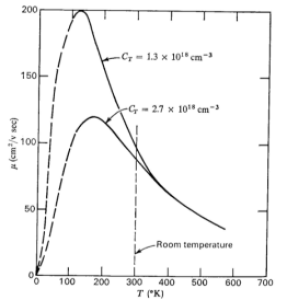 L'augmentation de température se traduit par une agitation thermique plus importante dans le réseau cristallin et, de ce fait, le temps de relaxation va diminuer car la probabilité de chocs avec les atomes augmente. Il s'en suit une diminution de la mobilité qui suit une loi empirique de la forme :